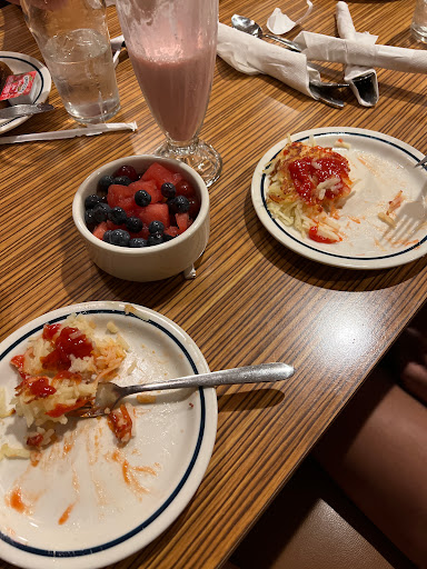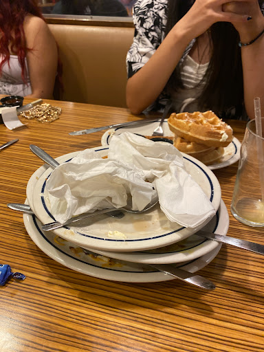 The service is bad. My family and I went to eat a late dinner at 7:00p.m. the place was empty with only five tables to serve. They put us in a booth that was dirty to begin with then second they brought out my daughters saladand no silverware. Our waitress was no where to be found so my daughter walked around until she found silverware on a table. Then they bring out the rest of the food and the butter on the top of our pancakes were incased in ice. When I asked the waitress she said oh we keep the butter in an ice bucket and walked away. My husbands eggs were runny and cold. It was just bad all around. It dont even deserve a one star. Still havent seen our waitress during this whole time as Im writing this review and been here one and a half hours.