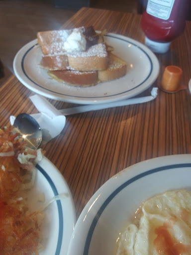 This was my fist time coming to this IHOP. I was really excited. We came in party of 2. Told it was a 15 minute wait. OK cool. They called everyone else around us for the next 45 minutes. We didnt move from out spot not once. I finally got fed up and went up to the list they had with names and parties. My name was crossed off!!!! What the hell? And I told the hostess we have been waiting you called everyone else that came in after us. She tried to blame me saying "oh we called that name, nobody answered." I was like no way we have been sitting here for 45 minutes. She finally seated us right then and there. Took our waiter 10 minutes to get two Dr. Peppers. Never checked for refills. We kind of felt like we were being ignored. Finally got HALF of our order 20 minutes later. There wasnt a fork or spoon around. The bacon tastes microwaved. The eggs looked like they were sitting under a heat lamp too long. Hash browns are flavorless. The French toast was mediocre at best.