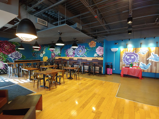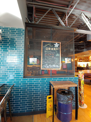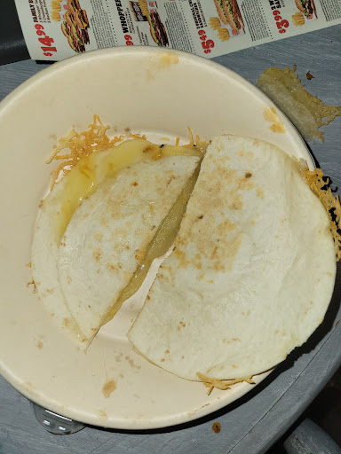 We ate here today. I dont know why a Qdoba would have a bar and all that ( except the bucks ) but part of that, at this location seems to be having a bathroom where the stalls are nearly dark, which is kind of creepy. Get some light in the stalls, people, so we can see theyre CLEAN? Then this location also has the bar leading into an outdoor patio. They have a big garage door that they open. The PROBLEM IS, in warm weather, it allows swarms of FLIES into the main indoor restaurant area, which is disgusting to have around your food, when you CHOOSE to eat inside! Then today, they were out of unsweetened tea and my partner bought iced tea. Shes diabetic. We had to wait the entire length of the meal, for them to make some more. Then we filled her cup and left. When we got down the road on the way home, she tasted it and it was SWEETENED! I think well avoid this Qdoba in the future, though we love eating at the other ones - that dont come across like a dive bar!