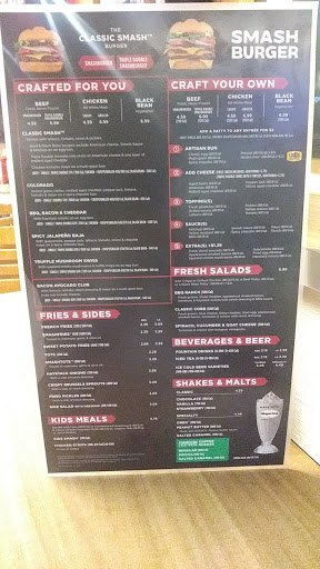Was sadly disappointed by this Smashburger location. We normally love Smashburger but this location was substandard. We ordered 2 Classic smashburgers, smashfries, and two malts. The malts were 1/2 the size of a malt at another Smashburger location (this may have been because we ordered to go, not sure). The burgers had soggy buns, old, gritty tomatoes, and were under cooked in places as well as being extremely greasy. The smashfries were stale like they had been sitting out for quite some time. Again, this is not a review of all Smashburger locations, we love them! Will maybe give this location another shot but will likely take our business elsewhere.