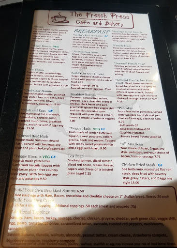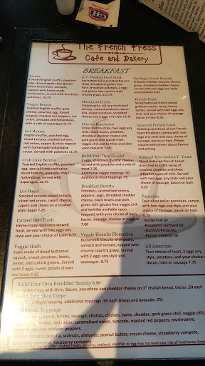 In comparison to other top breakfast restaurants in the Metro The French Press is very average the menu is simple,( variety of Bennies nothing very unique or exotic) the food itself was cooked properly and seasoned well(tasty).In regards to the staff, the young hostess appeared very uninterested and did not speak to us(we were asked if we wantd to be Inside or outside by another hostess, but then another hostess grabbed the menus and took the lead, but never looked at us or talked. It was a lil strange.)our server was excellent and although she brought the check early in the meal she explained why she was doing it, and let us know that there is never a rush.( we appreciated the communication. in this day and age thats rare.) The environment was excellent located in the Contemporary Belmar shopping district The French Press offers patio seating as well as a Industrial style dining room with huge windows that let in the sunshine and allows you to people watch. Enviroment, Staff, & dishes were very clean. I would return to the French press in hopes that I just ordered the wrong dish for me, and cought the hostess at a bad moment.