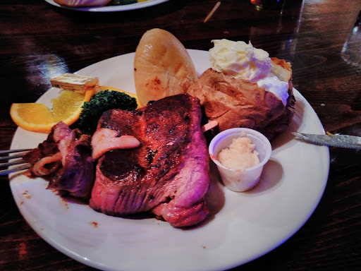 Inexpensive, basic steak and baked potato (dont expect anything else on the menu). Salad had too much dressing for my liking. Would probably choose any other food option given the choice but there isnt much around here. Service was good. Overall, satisfactory.