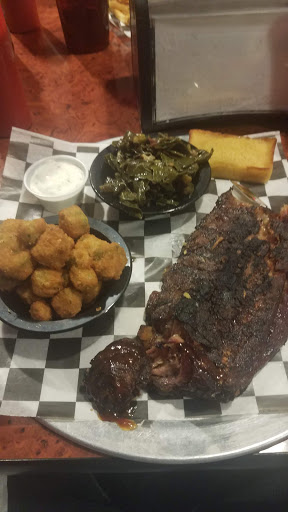 This was my first time . . . Very disappointed. Got the rib combo. . Both types of ribs, only one side, and for 17 dollars. Okay, thats fair for Good BBQ. Instead I got rubber though. 6 little, definitely microwaved rubber ribs for 17 dollars. Plus a tiny little cup of potatoes. The potatoes were the best, and they were nothing special. I really hate to be that guy, sounding so negative on a review. But damn. . The people were super duper friendly. But really bad at serving, they continued to offer us drinks with half full beers. But when our food Finally came and beers were empty. It took another 25 minutes just to get their attention for a check. I think once the food came they sensed we were disappointed and didnt want to come over. Took forever for our food. Then this is what we get. Friendly staff,but really just a place waiting to be turned over. I would recommend going to rib city before you go here, not the best but at least their edible. Oh and way less expensive.