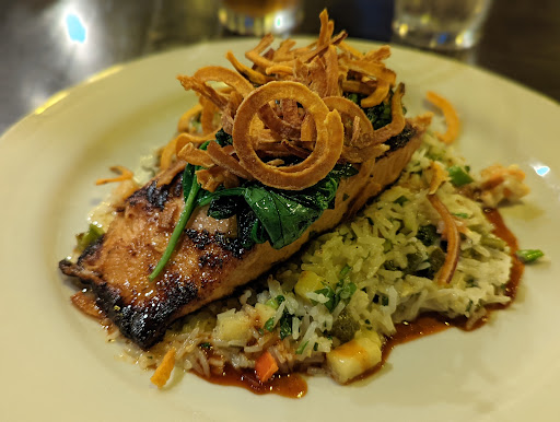 We went there because they advertise that they specialize in fish and that they are experts - it was a birthday and we wanted great fish! Its a bar. No separate restaurant. Its a TV bar. So loud you cant hear yourself think let alone converse. We had a table of 6. It was impossible to talk to anyone other than the person directly across the table, and then we were yelling. Food is ok, but nothing that youd go out of the way for, or recommend to someone else. Ive had very fine seafood in dozens of cities around the US and abroad. This place would never make anyones list. The scallops were chewy. Servings are very small, and come with some kind of drizzle, but no sides. My sons dish was a tiny serving - good thing we had ordered appetizers. They dont make sushi. They try, but it aint sushi. The best thing at our table was a fish sandwich - for about 4 times what it would cost in any other bar. Very expensive place indeed. Staff was friendly. If you like watching TV, then sit at the bar and enjoy.
