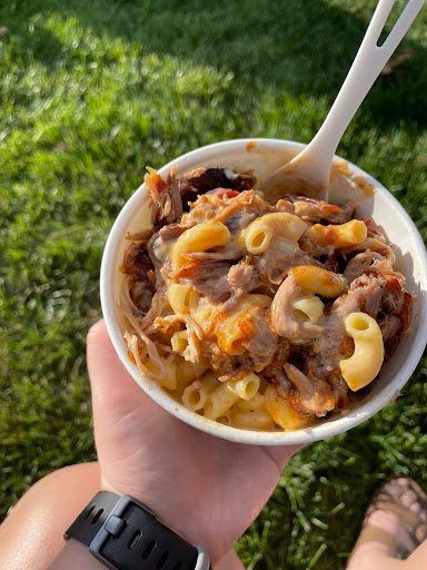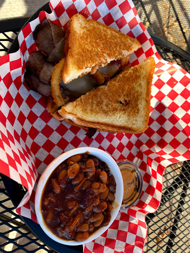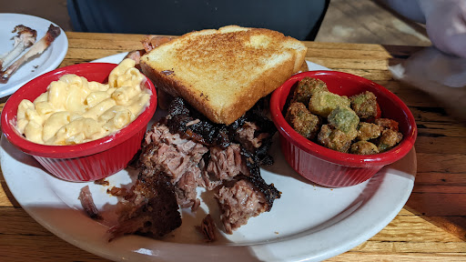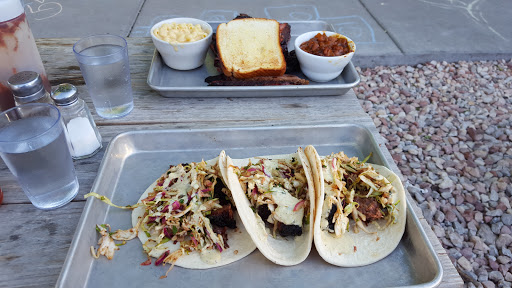 This is really good bbq. I usually dont get it from restaurants because I smoke my own and Im really good at it. To this day Ive never tasted brisket better than mine. That being said, these guys are pretty darn good. In my opinion its much better than the Serious Texas BBQ up in Loveland. I liked it a lot but the one negative thing was that it was a little on the dry side. The brisket had awesome smoke flavor (sliced and put on a bun) and a really nice smoke ring. The bun was awesome. The ribs were fall of the bone and pretty tender even though I thought they were slightly overcooked. The corn bread is really good with green chili in it and the mac and chee was a perfect compliment to all the items. I will definitely go back.