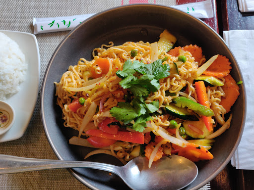 I went to this restaurant because it has a variety of vegan and vegetarian options on the menu and Ive been unable to eat at some Thai places because they use beef broth for everything. The restaurant is very small and the people there are friendly. I ordered a small bowl of Tom Kha soup which was good although tart and I ordered Pad Pak Ruam stir fry "American Hot" and it was very good. I think Ill go for Thai hot next time. The veggies were just cooked not overcooked so they still were crunchy and I had tofu which had been sauteed and it was good. This is the first time I have liked the way a restaurant prepared tofu, most of the time I cant eat the soggy squishy mess they give me but Malee knows how to cook tofu. :-) It did take a bit to get the food but not terribly long even though they were short staffed and had a new waitress. I loved the flavor and freshness of the stir fry I ordered and the wealth of menu options for vegetarians and vegans. I will be back.