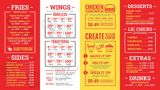 Ive been to Wing Shack a few times. The traditional wings are really good. Ive had better boneless wing, but the ones here are still really good too. The burgers are really great, especially the double burgers. Fries are really good. The hot dogs are really good. I plan to try more of their food items in the near future, assuming I can stay away from the wings and burgers. Wing Shack also does delivery. Ive only used it a couple of times, but the response time wasnt bad. The food was still good when it arrived, including the fries. Perfect for those times when I crave a burger and fries, but cant get out. Really glad I gave these guys a try.