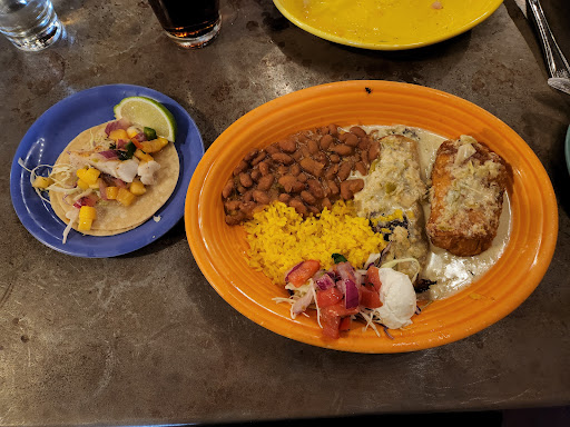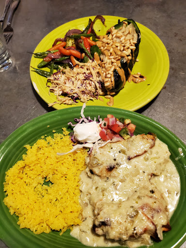 Wish I could have given this place negative stars. Had the chicken burrito with the tomatillo sauce. Sauce was good but chicken was dried out and the "burrito" was only stuffed with meat and no other ingredients with flavor. The poppers ...well all I could taste was grease and undercooked peppers. I made it almost half way through my burrito and realized I was never going to get to the onions, sour cream, cheese, etc because none of that was in the "burrito", not to mention I also didnt touch the pinto beans and took one bite of the saffron rice. The waitress saw we didnt like the poppers because only two were missing. Wouldnt remove that or the burrito from the bill. Just argued with me and made it a point to be loud as she talked. Good thing Im on vacation because I would have enjoyed getting loud back. Just dont eat here. If like the taste of oil, order the poppers and dive in.