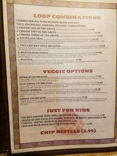 Without doubt, one of The poorest "Mexican" restaurants I have visited, to date. They might make great drinks, but I went there to eat, and the food was very poor. I had the crab and shrimp enchilada (which I notice one other person extolled the virtues of) and for gods sake, they used crab sticks! The sauce was a gelatinous mess with very little flavour and basically, it sucked. This choice was after I sent back my first choice off their menu of Carnitas. They came up dry and overlooked and also, hardly authentic. Carnitas are large, deep-fried chunks of pork. What the loop served were slices of overdone pork loin. If you want a drink, then their drinks might fill your bill, but if you want decent, reasonably priced Mexican food, find somewhere else!