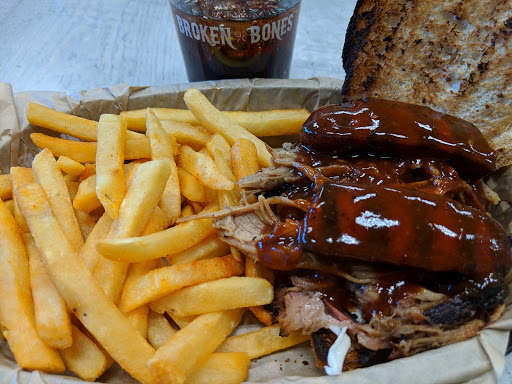 Update: Last couple visits have been great. No more overwhelming sauce. Great meat flavor. Back to being my favorite in the area. Update: Broken Bones had been my favorite and I always get the burnt ends. The last couple times havent been the same. Theyre no longer smokey. Theyre more just cooked and the last time, half of them were pulled like pulled pork, not cubes or "ends". The big trouble is theyve been sauced and had much cayenne pepper or something like it. They looked kind of orange with all that on it, and were very spicey. With that much cayenne, you cant taste the meat at all. Its like grocery store taco meat. Ill keep trying but this has been disappointing. Broken Bones is fantastic! Every visit has been legit and for now, Id call it best in the Springs area. Youd never think so being that its in a strip mall. They have burnt ends, which have been very consistent per my visits. One time, I had my wife grab a batch of them, heated them the next day at work and passed them out. They were top notch, great in flavor (right amount of great rub & smoke) and very tender. The ribs & brisket have been quite good every time as well. The sides menu has been a little generic, but in fairness thats not why Id go anyway. If I have poor visits, Ill change this review but for now, theyre my favorite.