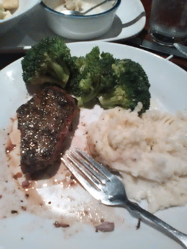 Asked the waitress the difference between the Alaskan sockeye salmon and the Atlantic salmon. She said they were pretty much the same. Pictured is the portion size of the Alaskan, which seems pretty skimpy for $21. Three of us ordered baked potato, but switched after being told it would be 45 minutes before they were ready. The broccoli side that I ordered instead of the potato came out about the time I was done with the salmon. The cheese rolls finally came out about the time we were mostly finished with dinner. No extras or freebies to make up for it. I would have rated them lower, but gave 3 stars because service in the past hasnt been this bad. Hopefully they were just having a bad day.