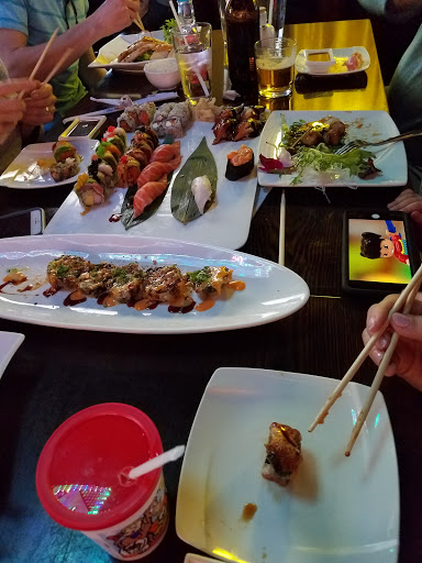 My Wife and I have been wanting to stop by and check this joint out. OK so we come in and it was a little busy. We got a booth right away. Service is sluggish and could be a lot more friendly. Put in an order of the usual drinks some hot Saki and a large Saporo. Took a minute got our drinks and I was really looking forward to getting g to the sushi. Saporo always opens up my appetite I order the Crazy Dragon Roll some Spicy Tuna, Cali Roll and a Philly. All Ridiculously Effing Good with the Crazy Dragon Roll just blowing out minds! We had to order an eel and the Spicy Girl which my Wife and I highly recommend washed it down with a deliscious gimmicks Flaming Volcano drink that was pretty damn tasty. (Vincent Vega Jack Rabbit Slims ) milk shake good. Total bill 100.00 great date with my wife and really really good grub. Highly recommended stop by if you been needing a nudge to pull in to the parking lot.