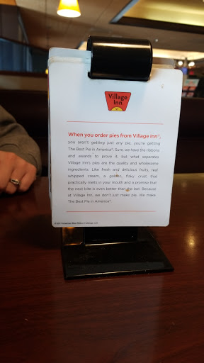 The Parker Village Inn has become a much cleaner and overall nicer place to eat since the brand overhaul a few years ago. They have the same robust menu that offers everything from Breakfast, Launch, and dinner items. Occasionally my family and I take advanced of their Pie Special on Tuesday where you can get a free slice of pie. They offer some nice selections for the freebie so its not like theyre just trying to give away the less popular pies that they have extra of. Which is nice. Otherwise its a Village Inn. Its a middle of the road one size fits all type of sit down restaurant. Though it can be trick to reach this particular location if youre coming from up north during thick traffic.