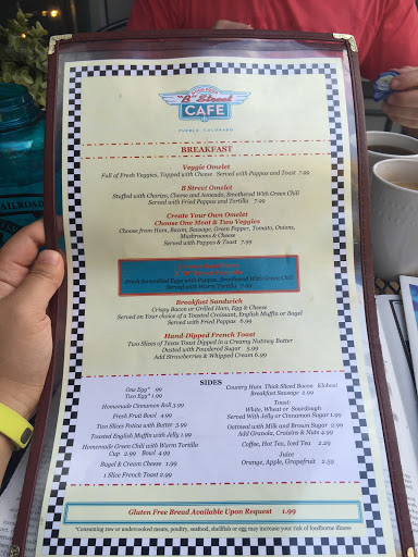 Holy cow! The B Street omelet is the best omelet I have had in years. Friendly service and a patio with a view of some great architecture. A must eat if youre in Pueblo!