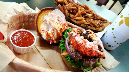 This was my 2nd visit. First visit I would give a 4 star. Lost a star on 2nd visit because of serious over use of what they called Sriracha mustard. The over use aka drowning of my burger with it (to the point I honestly couldnt eat it) was first issue. Second issue if there was any Sriracha in that normal yellow mustard Ill eat my hat. This was an $8 (approximately) burger sans fries and drink. With tip, that we paid UP FRONT (and if I tip I expect someone to at least come and ensure were satisfied (side note it was not busy and the young lady that served us made an appearance at table next to us w/in 10 minutes and ignored my wave) especially when our bill comes to $57 and change (ordered 2 burgers of the month, a Reski burger, 3 regular fries, one 50/50 fry, 2 cokes and 1 Coors and 10% tip). Probably wont visit a 3rd time.