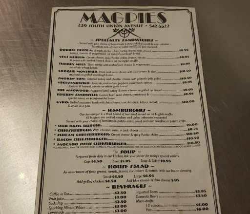 Stopped in the magpies for lunch and sat out on the patio. It took nearly an hour to get our food and when it finally came out it was mediocre at best. Im not sure if they forgot about us but the waitress never came back to fill our drinks until the very end when we were trying to get somebodys attention to pay so we could leave. Very disappointing experience.