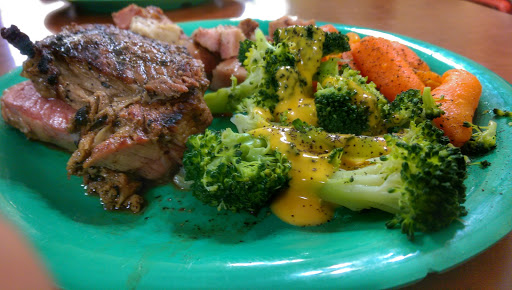 Overall, pretty good experience! The bad(ish): Experience :So we really didnt experience much bad. There just so happened to have been a party of 50 people (for a birthday of a wonderful 100yr old lady we met) in line as we walked in. Talking to some of the folks in the line (in that group), they had unhooked a chain and moved a 7 foot sign from the queue line... resulting in lines out the door (because 1/2 of the line wasnt being used). I moved it back, as all it did was hurt the flow. I should note that there was a large number of people, in that group, who were elderly and naturally werent exactly swift. We understood, just would really have liked the staff to help direct the crowd to move things along smoother. Food: We felt the French dressing didnt have too much flavor. Although we didnt use it, the triple tier chocolate fountain looked nothing like the ads or photos. Im sure it was delicious, but aesthetically speaking it was pretty unimpressive. The flow broke up on the first tier and that made the rest of them very separated instead of a solid curtin of chocolate. Only mention this, as it seems like a staple of the GC brand. The good Experience: The staff seating, cashiering and setting up the plates/silverware all very friendly. Made us feel welcome. Both of us very surprised at just how awesome the steak was. Asked for medium rare, just that. Flavorful and juicy. Mac n cheese, great. The buns, soft and buttery. Roast was tender, pizza had a lot more flavor than it looked, fried chicken was tasty and juicy as well. We really were skeptical about the food, but overall... Pleasantly surprised. Especially being that there was a group of 50 on top of a Sunday evening rush. Well be back, for sure.