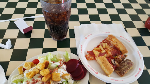 Pretty good food. I would like to say, dont believe the system when it tells you your pizza is ready. 3 times now I went inside and had to wait 5 more mins for my pizza to be ready. Overall it does have nice staff, seating, a few arcade games and several quarter machines for tiny toys and stickers. It is easy access off of I-70.
