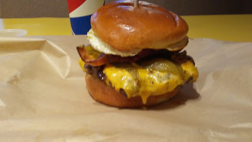 A new restaurant, opened in the same spot Mooyah once occupied. They have a decent selection of burgers and dogs, with some fun choices like green chili and fried eggs. Not a bad place for lunch.