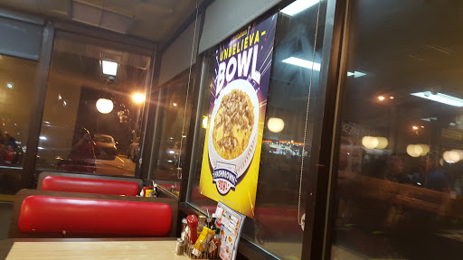 Got to this location and werent greeted by anyone. My nephew, niece and I sat ourselves in one of the booths and were then approached by one of the waitresses. We ordered our food and got our drinks quickly. Another family, who had more people, sat behind us about 10 minutes after us.They received their food first and when we finally got our food all of our hashbrowns were cold. The burgers were missing lettuce, tomato, and the bacon and forgot our waffles until we were ready to pay. Very disappointed in the service. Most definitely will not be back.