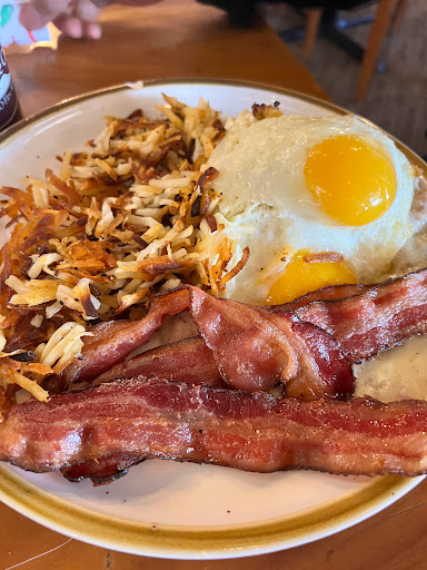 I eat breakfast here about twice a month, and it is hands down the best breakfast food Ive ever had. The menu is creative and expansive, the food is delicious, the drinks are bomb, the waitstaff are friendly and on top of things, the vibe is great, and the portions are big enough for leftovers. It gets busy on weekend mornings, but thats a testament to the all-around quality. Just get there early. Its a bit pricey too but you wont find a better and more unique selection of benedicts or skillets. Totally worth it every time. Everytime someone visits I make sure to take them here.