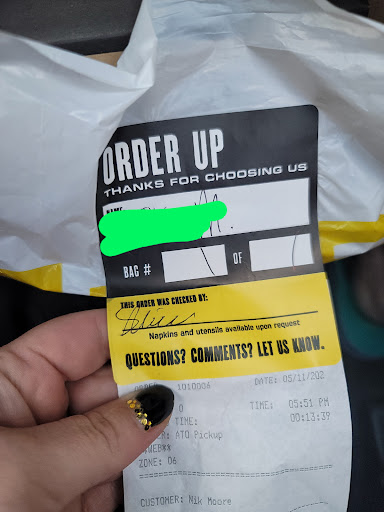 The wings are decent - like every other BWW, but not good enough to make up for the service. Ive eaten in a couple of times, but usually take ou when I come here. Service is slow and unfriendly. Waited 20 minutes today for an order to be done that had been ordered 30 minutes before the pickup time. I was 4 minutes early, so Ill eat that time, but then waited 6 minutes for the wings to finish cooking and another 10 for the person at the front counter to finish cleaning the doors and giggling with the other wait staff. Its the last time Ill come here. My suggestions: 1) Hire someone else to clean doors - it should not be the same person handling peoples orders and getting drinks; 2) Dont come here on a time crunch - even if you order ahead.