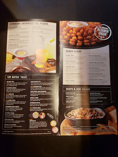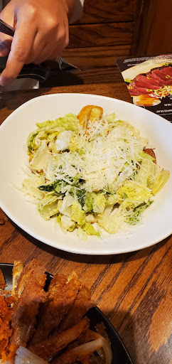 Came in on a Friday evening with my husband, about 6:15p. Not many people waiting when we got there, however it got packed quick. One of the host came out with small trays of cheese fries with Ranch... it was a nice little something while we waited. We were seated about 20 minutes later. The waitress wasnt the best Ive ever had but she wasnt too horrible. She did recommend a great drink that was perfect for me & did get our food order correct, however she forgot too many other things that Id asked for her to grab which resulted in me asking for the same item again. Timing on the appetizer, salad, and meals were perfect! The teamwork that I noticed was awesome!!!! You could tell that nothing was just sitting back there waiting, there was always someone coming out of the kitchen with something in their hands. Hubby ordered a steak which was cooked to perfection and I got the Alice Springs Chicken equally delicious. Definitely would treat ourselves there again.