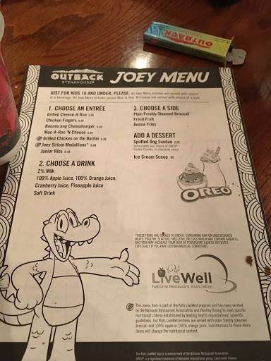 For some reason i remember having more choices, but either way anything ive ever eaten here would have tasted better if i had just made it at home, the "bread" on my chicken was falling off and was just gross, their staff isnt very observative because me and my father wondered around for a while trying to find someone to seat us and it was freezing!! even my dad who has his air conditioner on year round was complaining. we both regretted not waiting for texas roadhouse to open