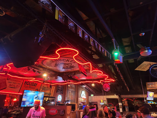 Hunting motif. 4 pool tables, foosball, shuffleboard, a live dj on Fridays and live music periodically with a dance floor, free pool Sundays and free poker Fri, Sat, Sun with the American Poker Tour. They have a full menu with Vietnamese and American food. Excellent Phò and chicken fingers. Food takes a little while to get to you. It can be pretty crowded sometimes.
