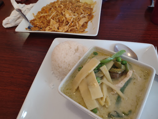 Ordered take out from this place on Easter I wasnt sure about ordering from a new place Ive never eaten but this place had so many good reviews. Let me just say Im glad I ordered here! This is the best thai food Ive ever had everything tastes fresh and it very light feeling doesnt make you feel heavy after eating. The place inside is very clean and the lady who cashed me out was super nice. My husband and I ordered a little of every thing to try the lady joked and asked if we had a party at our house I laughed cause it was just me and my husband. Got the crab orchids excellent and their not just filled with cream cheese, satay which was juicy and tender, vegetable pot stickers. For entrees green curry (hot) and yes its actually hot and has a nice kick tastes fresh I ordered pad bai kra prow(Thai Basil) never had that before and it so good needless to say we had left overs. This is my new favorite place and cant wait to try more!