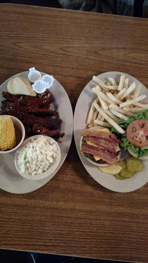 Service was terrible. I ordered baked potato and fish. The baked potato skin was like a piece of leather and the inside was cold. Fish looked like something you buy in the frozen section at the grocery. Husbands ribs were nothing but bone. I donot recommend eating here