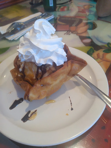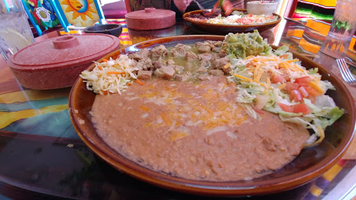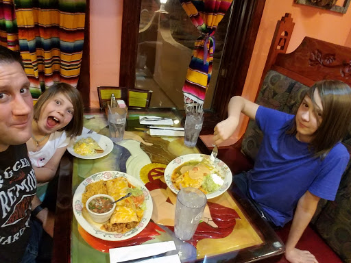 Ive always gotten good food here. The enchiladas are very good. You can get stuff for picky kids, like a burger and fries. The burgers are big but theyll let you split one and even cut it for you. Theres plenty of food in a meal. Decor is best described as a fiesta exploded, but I kind of like the carved, brightly painted chairs. This local restaurant (part of a chain) is Mexican owned and mostly Mexican operated, though Id still describe it as Mexican-American. A family restaurant.