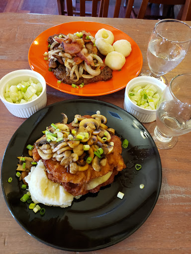 I went with 5 other adults, 3 were locals, 3 were from out of state, around Christmas time. Let me start off by saying this - the food was delicious. However, the older woman waitress we had was TERRIBLE. It was just appalling how rude she was! We were all taken aback. My mother-in-law, said it was the rudest someone had ever been so close to her face, she was very upset! You could say she was partially to blame, as she had the "audacity" to ask where her side dish was when the woman was leaning over her to put down a plate - which is why the woman was so close to her face when she was so rude. I asked if I could get the jaeger sauce with my weiner schnitzel instead of just getting the jaeger schnitzel (the difference is the schitnzel would be breaded with sauce, opposed to unbreaded with sauce). She wide-mouthed stared at me in silence for a good 30 seconds as if I had just grown two heads. She acted like it was unheard of. Heres a tip about customer service, if you have never heard of something being done before and youre not sure if it can be done (which it totally could, just make some jaeger sauce, its already on the menu! The kitchen did this for me, seemingly without issue!) just calmly say "Ill have to check with the kitchen". This woman ruined our experience here...were still talking about how bad the service was. Its really unfortunate because the food was really good and the young adults who got us water and bread were very sweet, but it just isnt worth it to go back. I know I couldnt convince my family members to come back even if I tried. I suggest the owners/managers look up a book called "The Ultimate Question", and consider how this poor customer service must be affecting their business. Again, its unfortunate that the food is so good, but its just not enough to keep us coming back.