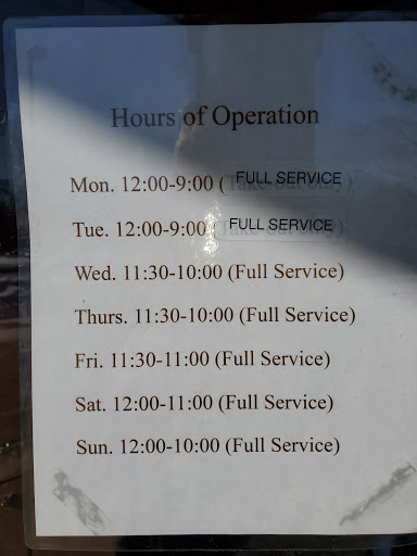 | Working: | 11:30AM–10PM 11:30AM–10PM 11:30AM–10PM 11:30AM–10PM 11:30AM–11PM 12–11PM 12–10PM |