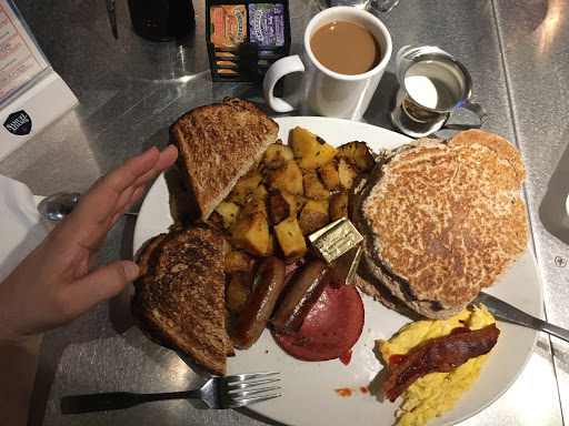 Good spot for a family/friends meal if (a) youve got a big appetite, and (b) you catch them at a slightly off-peak time -- the staff-to-table ratio can be slightly off at times. Menu is tried and tested comfort foods, with the occasional weekly special item for interest, but the selling point is portions. Nothing rock-star incredible, but nothing youd find fault with. Fried green beans and hummus are our go-to apps, and the breakfast options dominate the selection. Not a ton of light/health-oriented options, but then again, its a diner at heart, right?