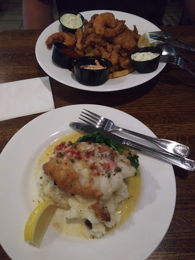 Over priced by nearly 50%. Had fishermans platter mostly French fries, cod fish 1/2 the size of a bar of soap, 3 pieces of shrimp, enough clam strips to fill a 5 year olds hand...certainly not worth $25. Ceasar salad barely had dressing on it. Slow service, there just over 2 hours. Will not recommend nor NEVER go back. $200 check for french fries. Better off going to Friendlys for same meal with better portion and price, plus an ice cream. The waitress was nice, N.E. clam chowder was good as was the pina colada and I have never seen scallops so small knowing theres different species, these were smaller than midget scallops. Dont be disappointed, just go some place else. 00