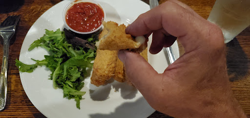 We wouldnt go back. First off, you have a fine dining place setting (dinner fork, salad fork, soup spoon, and butter knife) with blue linen napkins, but the table is covered with a brown sheet of crinkly paper. Weird but we figured the food would make up for the decor and atmosphere. We ordered the Calamari as an appetizer, which was okay, the bland breading kept falling off but it was cooked correctly, so points for that I guess. The marinara was watery and definitely from a can. My husband ordered the Admirals platter to try a bit of everything and couldnt eat more than a few bites. He couldnt stomach it, and hes not a picky eater. The salad that "came with his meal" was a premade salad on a freezing cold plate suggesting its been sitting in a fridge for hours before being brought to the table. The Staff were very friendly when we were greeted but upon sitting we were ignored the majority of the meal, so that was the cherry on top. We wont be returning.
