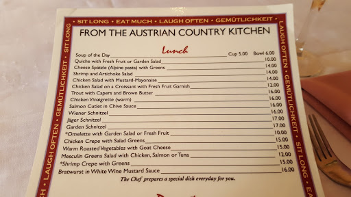 Perfectly portioned, authentic Austrian country cuisine in a comfortably decorated, repurposed space. Nice menu selection in the $20s to the $30s and you get what you pay for. Delicious! Note that we ate dinner during the week and there was only one [very friendly] server and the chef, Markus so the service was pretty slow. Make sure you bring good company! As of this review, theyre closed on Sundays and Mondays,but doublecheck the website and make reservations.