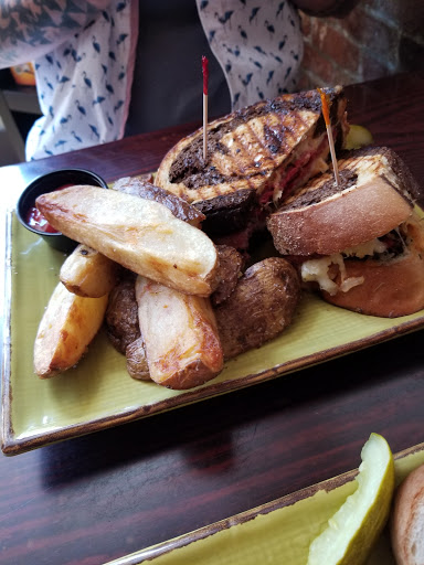 We tried to go to this restaurant on a Saturday and it was mobbed. This time we went on a Friday around 3:30 p.m. We shared an order of fried pickles; husband had the mac and cheese and I had shepherds pie. It was all very, very good. I often think restaurant food is too salty; this was not. Fun decor; old building, brick walls, Irish mementos. Lots of people at the bar watching sports on various screens. Sits on the town green; easy parking.