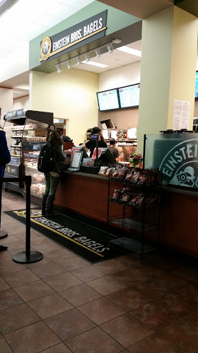Hi Google bagels and found Einsteins which I have been too and many other locations. I drove for 15 minutes to this Einsteins location and it wasnt on the map where the map Google map said it was. So I called the number listed and the guy answered the phone and told me that this Einstein is part of the college food service and they do not sell Bagels to the public. I guess if you walk on campus, you can go in and order a bagel to be served to you but you cannot buy Bagels to go or buy spreads to go or any of the other things that they sell at a normal Einsteins and I think that the listing is very misleading