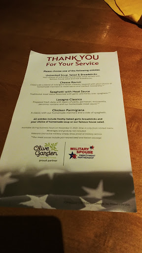 Dont judge by the run down looking exterior. Inside was clean and well maintained. Service was nice and the food was tasty. Olive Garden is doing more scratch cooking. Great value.