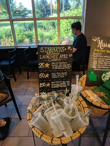 A decent Starbucks, right off the highway, good for a quick coffee and bathroom. Lots of parking.