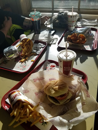 This is a simple, no-fuss burger and hot dog local chain restaurant that also serves breakfast and dinner specials. The restaurant interior is rather drab but if youre just going for the food, its not a bad deal and the restaurant remains open a bit later than most restaurants in the area.
