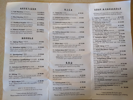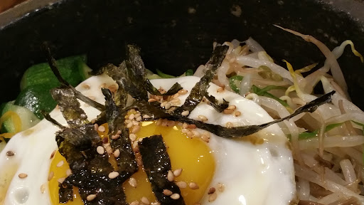 For a super reasonable price youll get homey korean food. If you dont know what to get, try the bibimbop - think of a fried rice dish served in a sizzling stone bowl with tons of veggies, shredded beef, and you add your own spicy dressing. Mix it all up and its amazing. Not the best location but the service is good and food great so I dont factor that into my rating.