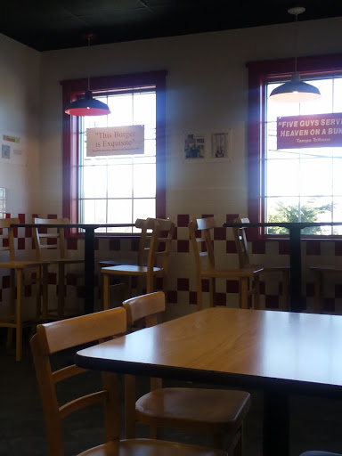 One of the better five guys Ive been to. Tables and everything seems to be cleaned often and they are quick on your order.