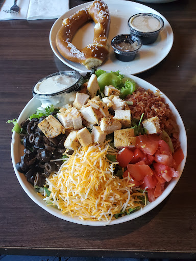I and my husband ate a late lunch there on Friday Sept. 19th. I ordered the chili cheeseburger that came with fries. He ordered the mac and cheese with bacon in it. I got a chili cheeseburg that had maybe a tablespoon of chili on it and the fries were way overcooked. He got his meal...10 bucks and NO salad...and it came in this ridiculously large bowl...with a small helping of bow ties...the cheese was scarce and not even on all the noodles...so basically he had a bowl of white pasta. Very, Very disappointed. It was happy hour as well and it was extremely noisy and busy in the bar area. But you have to expect that. But the food was lousy and not worth it. I will not go back.