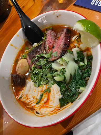 UPDATE: Ive gone back a 3-4 times and the pork meat has gone down. It lacks flavor. It use to have a glaze on top and it doesnt. The pork is more bland in the bao and tonkotsu. The chicken had always been bland- tough bland boiled type white meat. I still enjoy the broth and ramen but will look for veggie options until I can try other noodle places. Not the best place for new any more. ----------------------------- The broths are deep, rich and flavorful. The steamed buns pork belly is the best. Atmosphere is small and can be cramped when busy. Take out portions are smaller than dine-in portions. Not a fan of the beef noodle classic plate and the tonkotsu is better than the paitan ramen. The bubble tea unfortunately is not very good. Over priced for ice laden tea or mix juice. And the black bubble are weak in flavor. It should have a strong licorice taste and it didnt. Ive had better bubble tea at the mall. Nevertheless, I recommend this place if you love noodles or want traditional steamed bao.