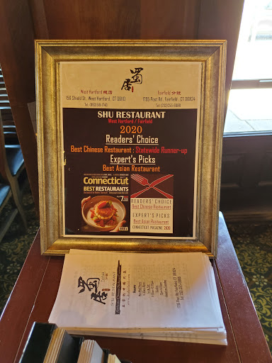 The very best Chinese Szechuan food weve ever had. The lovely owners have two restaurants near Hartford: one is a hot pot restaurant called "Han" and the other is also "Shu". The menu is extensive and we have tried many dishes. The soups are remarkable, the pork and lotus root is very special, as is the tomato fried egg. The grilled whole fish is very special. The extensive vegetarian menu is wonderful. If you like Chinese food, this is the place to go!