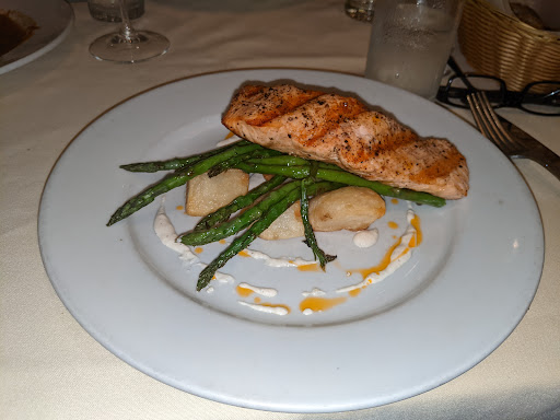 Went for dinner meeting. Service was very good. Appetizers above average. Salmon entrée was disappointingly over cooked and dry. Background noise from bar area and other patrons made it difficult to hear lecture. Average experience, food was not impressive enough that I would return on my own dime.