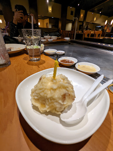I had the Habatchi combo chicken and steak and the noodles. It was delicious and the portion size was huge, I even had leftovers. My group got dessert to share, both bumbas are to die for! Ones a peanut butter chocolate and the others a fruit sorbet assorment with white chocolate. Both a great finish for any meal. Great service and great presentation cooking!